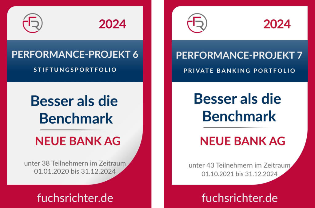 Exzellente Anlagekompetenz der Neue Bank AG: Top-Platzierungen bei den FUCHS | RICHTER Performance-Projekten