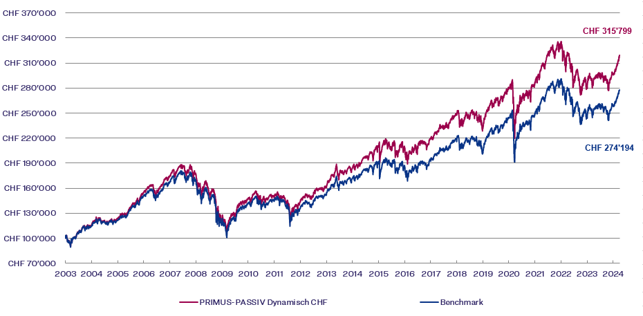 PRIMUS-PASSIV Dynamisch gegen Benchmark in CHF