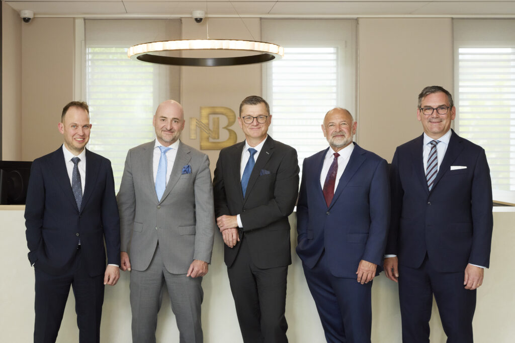 Executive Board der Neue Bank (von links nach rechts): Thomas Hemmerle (Wealth Management), Claudia Jehle-Ospelt (Finance & Services), Roman Pfranger (CEO), Stefan Tschopp (Legal & Compliance)